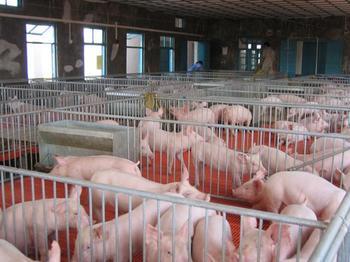 保育舍:旨在滿足剛斷奶仔豬的獨特需求。這些仔豬對溫度、通風(fēng)設(shè)備、熱量和新鮮空氣有特殊的要求。通常情況下,20多個仔豬在一個小格子間里??臻g的大小足夠讓仔豬走動,玩耍和鍛煉。每個格子間有自動的供水和供料器,并且配備該階段仔豬使用的專門配制的飼料。一般在保育舍待上7個星期,然后被運到育肥舍。