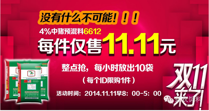 六、特惠時(shí)間:2014年11月11日上午8:00開始--下午17:00結(jié)束,整點(diǎn)放送,每小時(shí)10袋(每個(gè)IP地址限購(gòu)1袋)。