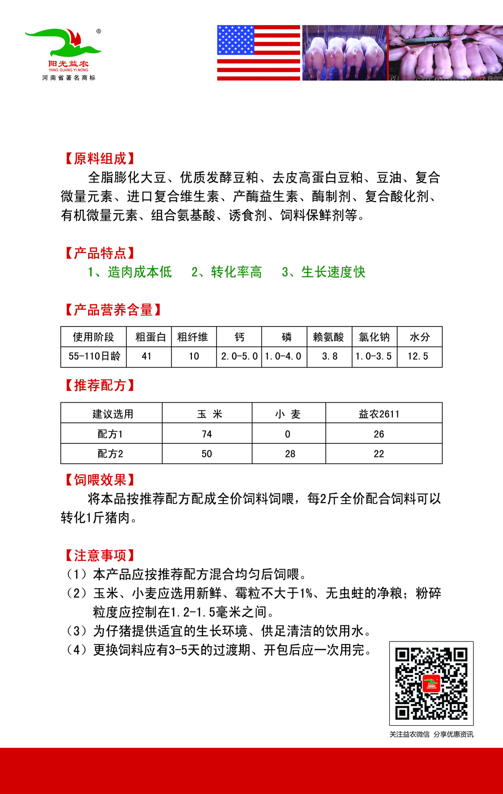 九、飼喂效果:將本品按推薦配方配成全價(jià)飼料飼喂,每2斤全價(jià)配合飼料可以轉(zhuǎn)化1斤豬肉。